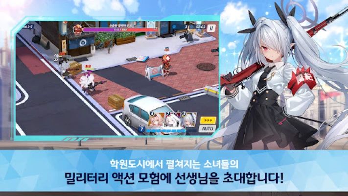 눈을 뗄 수 없는 화려한 3D 그래픽으로 구현된 전투 속에서 학생들의 활약을 직접 지휘하세요. 귀엽고 사랑스러운 캐릭터들의 섬세한 모션과 박진감 넘치는 스킬 컷신은 매 순간을 더욱 생동감 넘치게 만듭니다. 학생들의 고유한 능력과 전장의 지형, 그리고 상성을 면밀히 고려한 전략적인 지휘는 승리를 쟁취하는 데 필수적입니다. 당신의 현명한 판단과 탁월한 전략으로 모든 전장에서 영광을 거머쥐세요.
