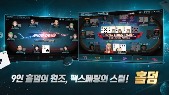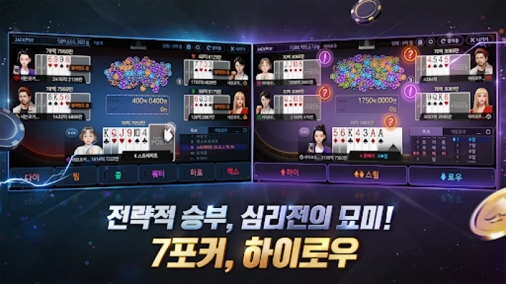 손 안에서 펼쳐지는 스릴 넘치는 승부의 세계, 한게임포커와 함께하세요. 오랜 시간 사랑받아 온 클래식 세븐 포커부터 블라인드 베팅의 묘미를 자랑하는 로우바둑이, 그리고 최대 9인까지 참여하는 맥스 베팅의 짜릿함을 선사하는 홀덤까지, 모바일 환경에 최적화된 인터페이스로 언제 어디서든 깊이 있는 포커의 재미를 경험할 수 있습니다. 하이 또는 로우, 두 가지 선택의 즐거움을 주는 하이로우까지, 한게임포커는 모든 포커 마니아를 위한 완벽한 공간을 제공합니다.