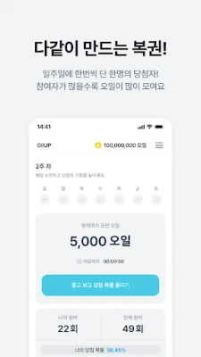 바쁜 일상 속, 손쉬운 앱테크를 꿈꾸시나요? 오일업은 복잡한 절차 없이 당신의 시간을 소중하게 지켜주면서 자동으로 리워드를 쌓아주는 혁신적인 플랫폼입니다. 단 한 번의 설정 이후에는 앱을 켜두기만 해도, 당신이 잠들어 있거나 다른 활동에 몰두하는 동안에도 '오일'이 꾸준히 적립됩니다. 이제는 애써 무언가를 찾아 누르거나 설치할 필요 없이, 오일업이 알아서 당신의 지갑을 채워줄 것입니다.