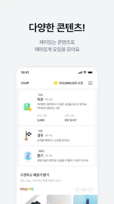 단순히 기다리는 것 이상의 즐거움을 찾으시는 분들을 위해, 오일업은 다채로운 참여형 콘텐츠를 마련했습니다. 잠시 짬을 내어 간단한 미션에 참여하거나 미니 게임을 즐기면 즉시 오일을 획득할 수 있습니다. 복잡함 없이 30초 내외로 완료 가능한 효율적인 미션들은 지루할 틈 없이 당신의 적립액을 불려줄 것입니다. 이렇게 오일업에서 모은 소중한 오일은 다양한 인기 기프티콘으로 교환하여 일상 속 작은 행복을 누릴 수 있습니다. 지금 바로 오일업과 함께 새로운 앱테크 경험을 시작하고, 당신의 시간을 가치 있는 보상으로 바꿔보세요.
