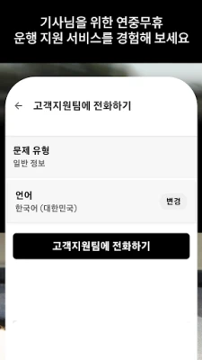 국내 최고의 내비게이션 서비스 TMAP 기반의 길 안내로 언제나 가장 빠르고 정확한 경로를 제시합니다. 목적지까지의 최적 이동 거리와 예상 소요 시간을 미리 파악하여 더욱 안정적인 운행을 지원하며, 승객에게도 신뢰를 더할 수 있습니다. 운행 중 궁금하거나 도움이 필요할 때, 우버 기사님 고객센터는 연중무휴 상시 대기하며 기사님의 모든 여정에 든든한 지원군이 되어 드립니다. 언제든 편안하게 문의하시고 최상의 서비스를 경험하세요.